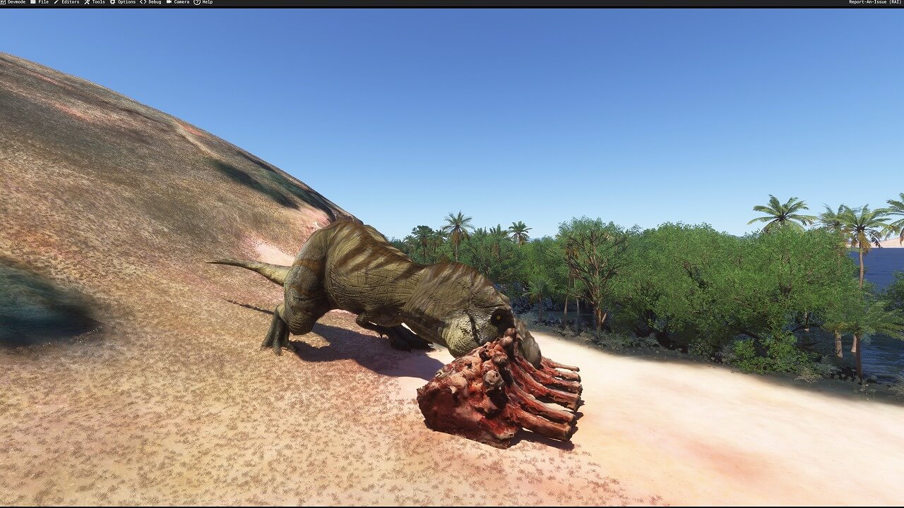 自作シーナリーの制作と同じ手順で作ったobjects.xmlファイルにゴジラのネームとGUIDを記述し緯度経度を東京湾に設定、 コンパイルすると…