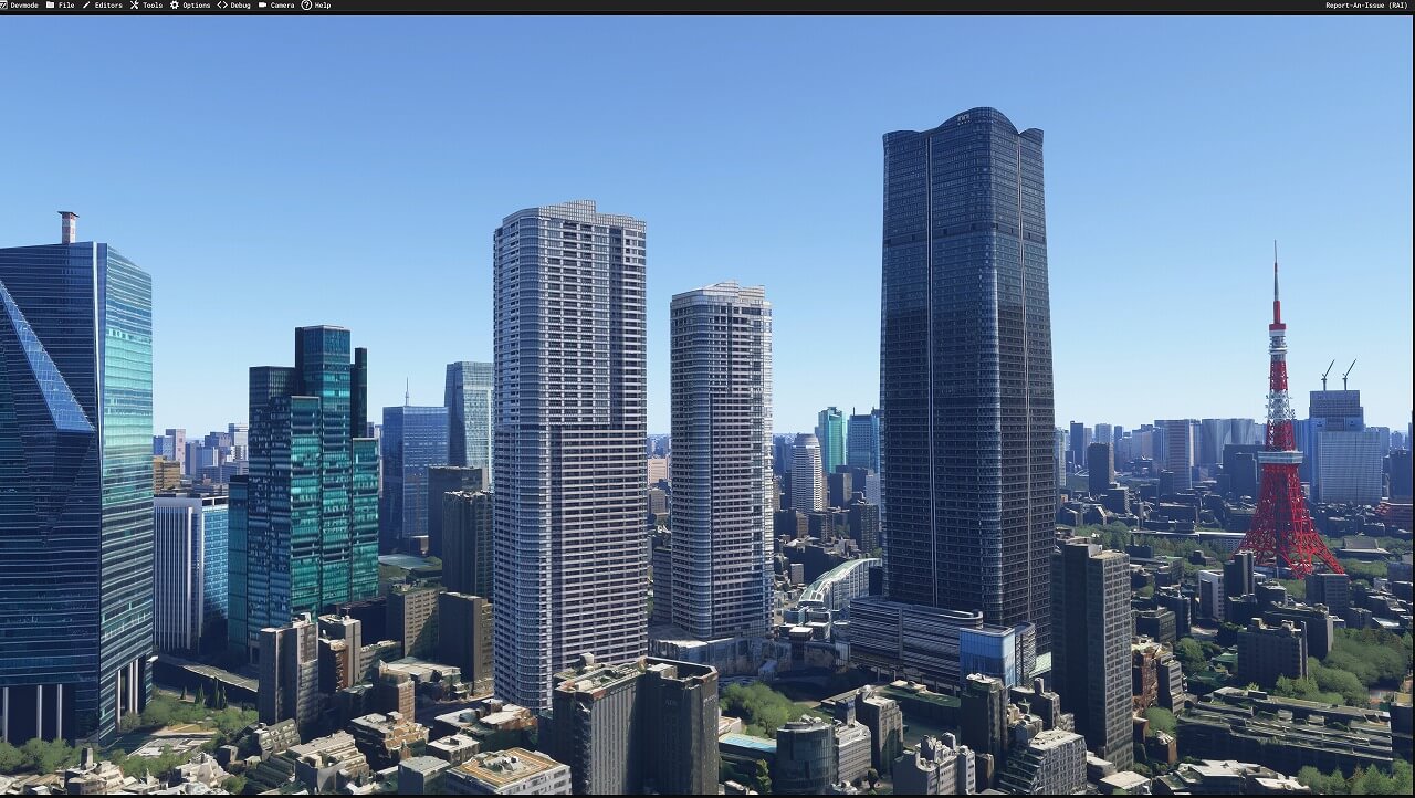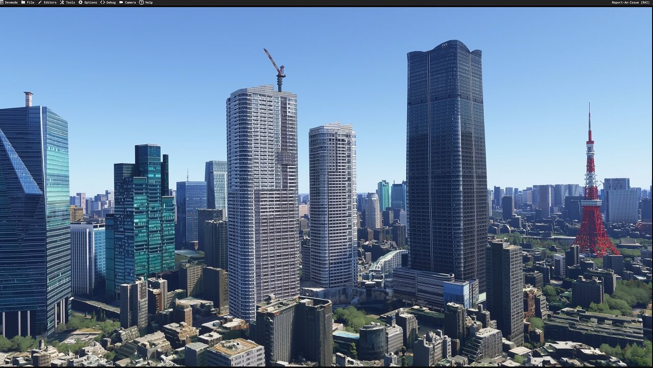 FS2024ネイティブ対応の東京シーナリーを更新しました。今回の更新も建物のLOD設置追加です。(2025. 1. 6.)