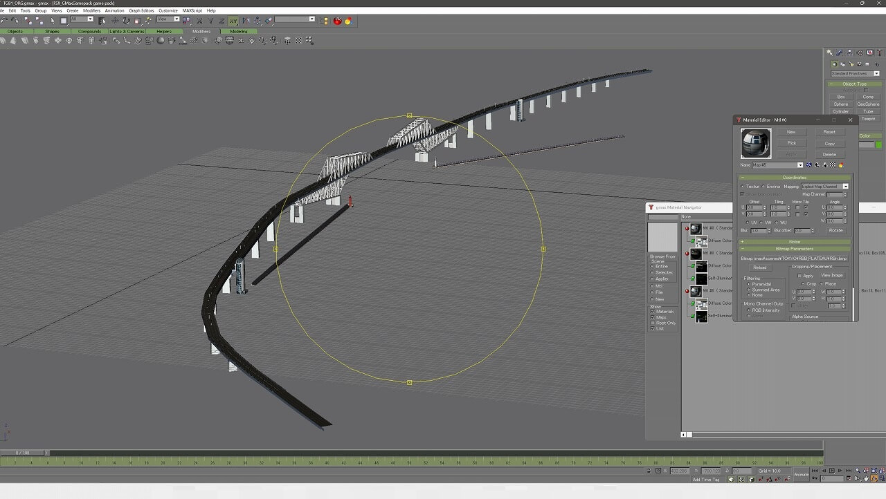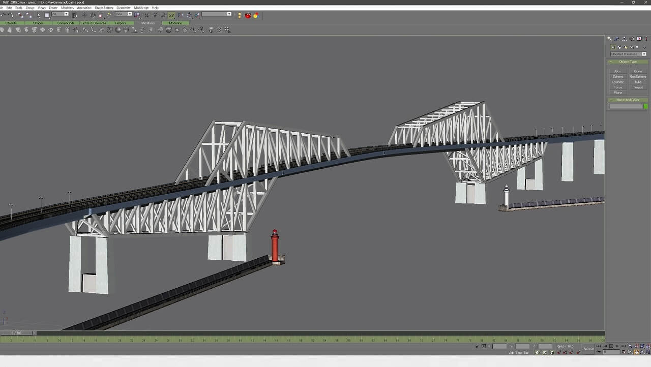 新オブジェクトと位置ズレして重複中の横浜シーナリー側に入ってる「東京湾アクアライン」を自作 シーナリーと合体 (単に位置をピッタリ合わせた重複です)、細かい部分を調整中。