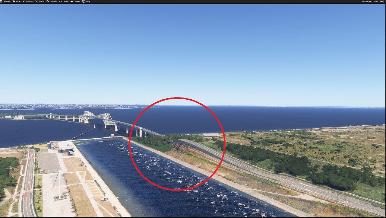| 東京&横浜シーナリーの水没してる橋を修正しました。FS2020、FS2024版両方で実施してます (2024.12. 5.) |